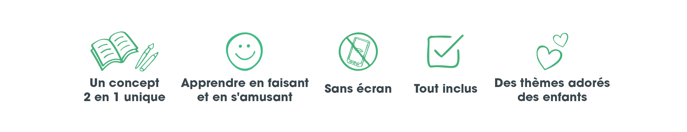 Pour passer à l’action et apprendre en expérimentant et en faisant avec ses mains sur le thème abordé dans le kit. Une activité amusante avec tout le matériel fourni, à réaliser avec votre enfant pour développer sa motricité fine et stimuler sa créativité par des jeux de collage, pliage, façonnage, montage, etc.