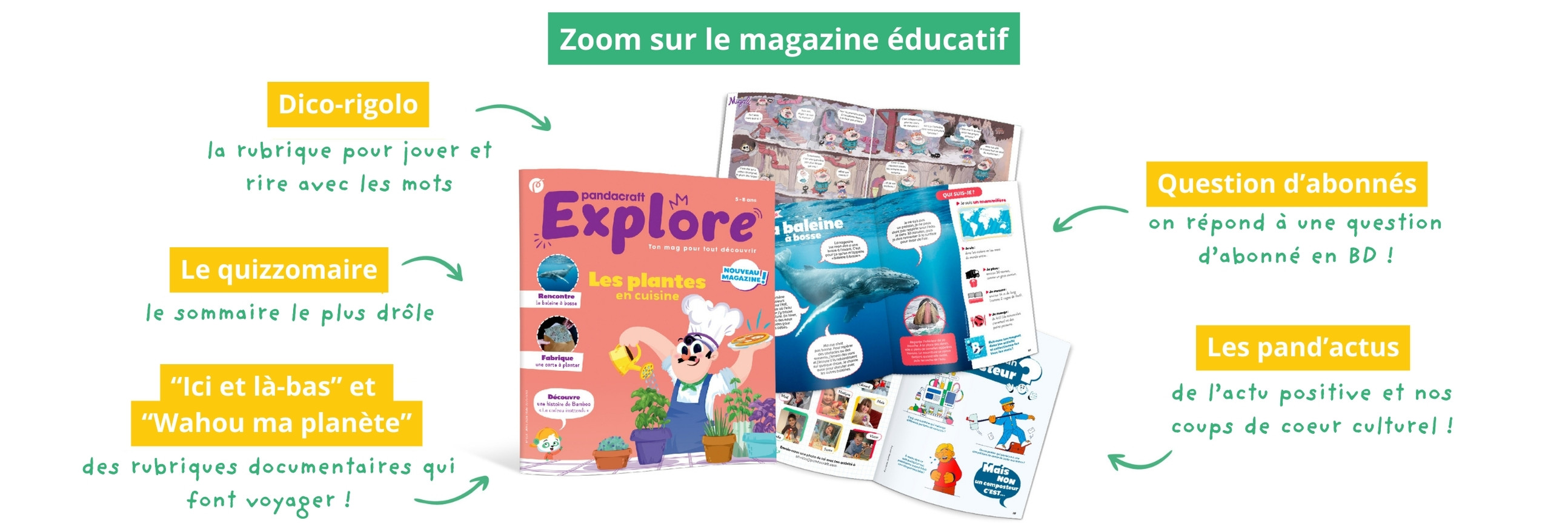 Découvrez notre magazine de 40 pages rempli de découvertes, d'humour avec des BDs, des jeux, des dossiers éducatifs et des ateliers DIY.