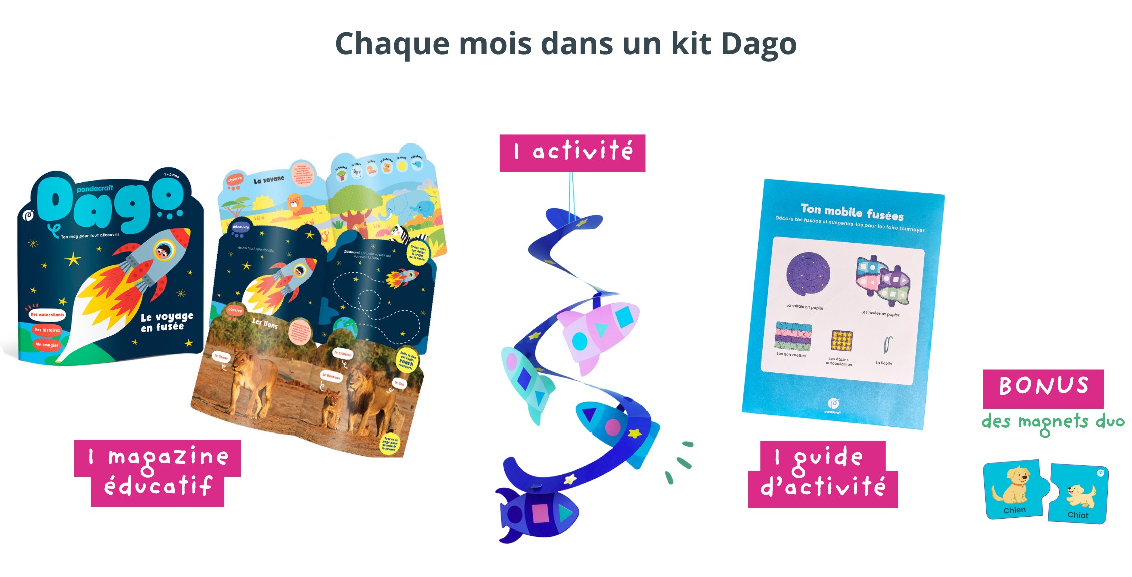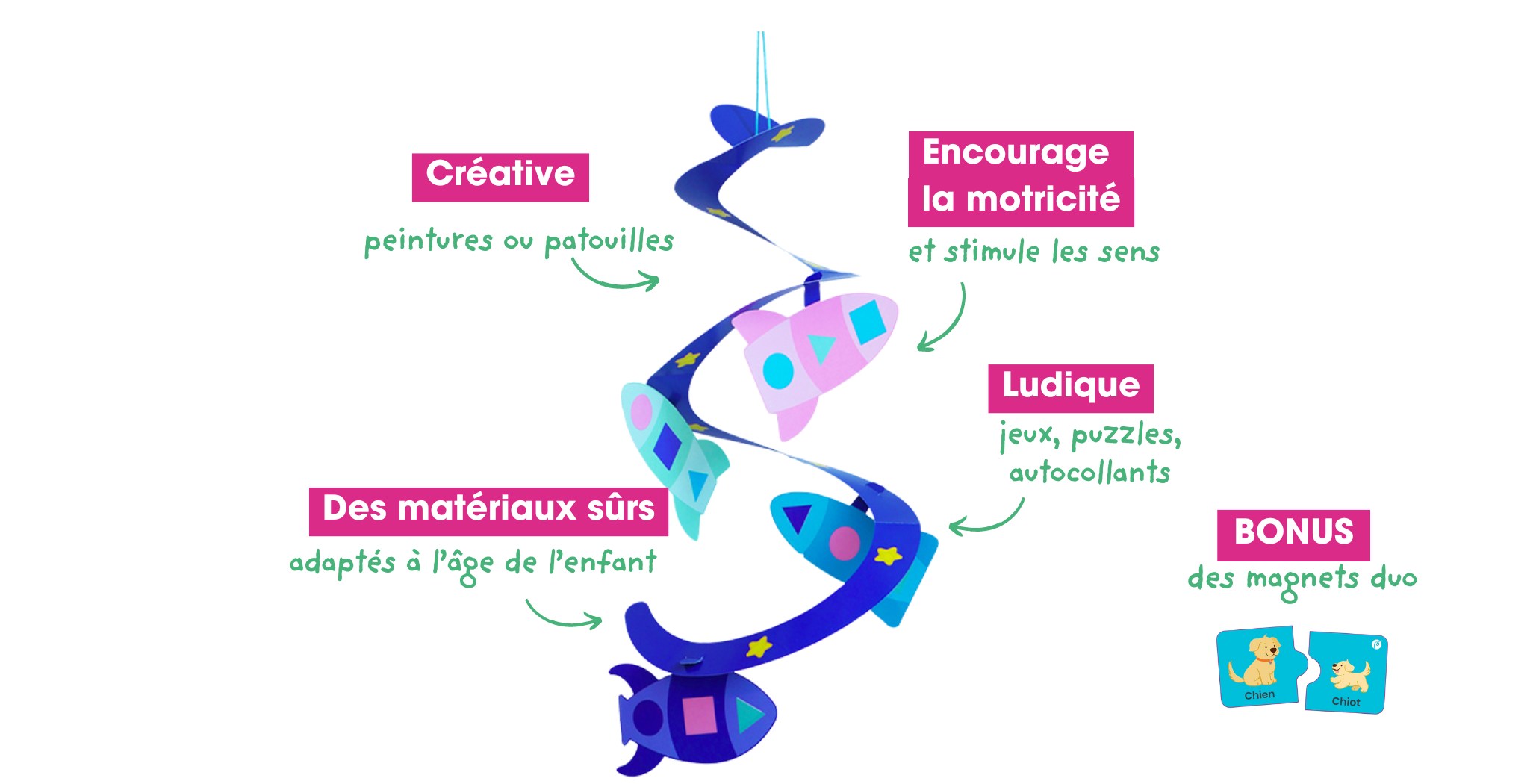 Pour son premier kit , fabriquez ensemble un mobile à suspendre et voyagez dans l’espace avec vos fusées 🚀 !
